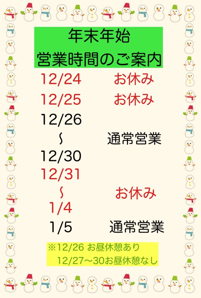 〜年末年始の営業スケジュール〜