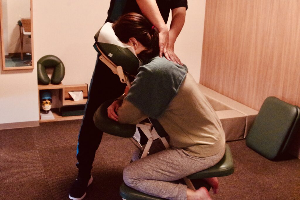クイック専用の施術べッドを使用して首・肩・背中を部分集中